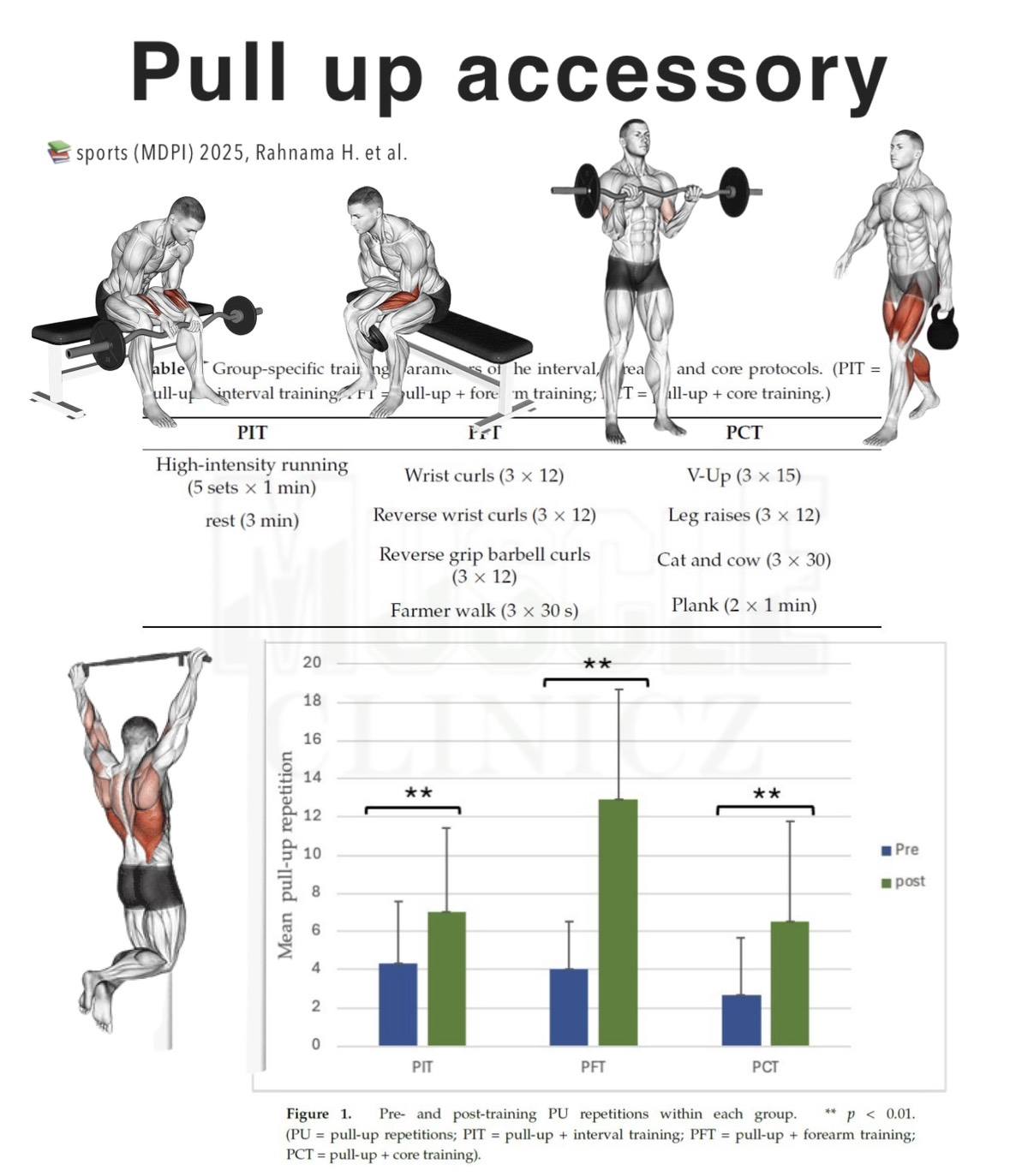 ได้งานวิจัยนี้มาจากวารสาร sports (MDPI) ซึ่งเป็นการทดสอบที่ตรงไปตรงมามาก คำถามคือ ฝึกเสริมอะไรดี ทำให้เราดึงข้อได้เยอะขึ้น การดึงข้อเนี่ยบางครั้ง limitation ของการทำได้น้อย อาจจะไม่ได้มาจากน้ำหนักตัวเยอะอย่างเดียว บางคนลิมิตที่ปัจจัยอื่นมากกว่า น้ำหนักตัว เช่น การจัดการน้ำหนักตัว การถ่ายแรง ความแข็งแรงของกล้ามเนื้อ หรือบางคนแรงกำมือหมดก่อน ซึ่งอันนึงที่มักไม่ใช่ข้อจำกัดของการดึงข้อเลย คือ ปอดและหัวใจ ไม่มีใครดึงข้อจนหอบไม่ไหว แล้วต้องหยุดดึงเพราะหายใจไม่ทัน…