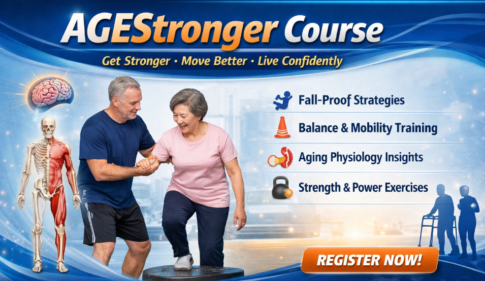 6️⃣ A core philosophy of AGEStronger is no one-size-fits-all. There is no “best” program for older adults. The course covers comprehensive strength training across muscles, tendons, bones, and the nervous system, as well as power training, which is critical for fall prevention and daily activities such as standing up from a chair, stepping quickly, or recovering from a stumble.